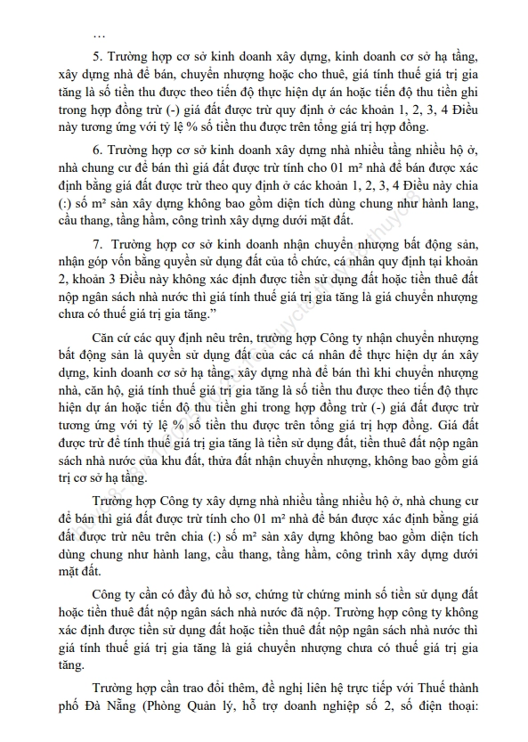 Theo hướng dẫn tại công văn, việc xác định giá tính thuế GTGT sẽ phụ thuộc vào nguồn gốc bất động sản, hình thức giao dịch, và loại hình công trình.