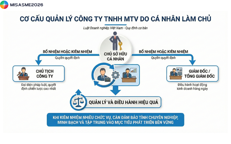 Chủ sở hữu có quyền bổ nhiệm hoặc kiêm nhiệm các vị trí này. Khi chủ sở hữu cá nhân đảm nhiệm nhiều chức vụ trong công ty thì việc quản lý và điều hành cần đảm bảo tính hiệu quả.