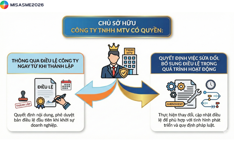 Nói cách khác, chủ sở hữu có quyền quyết định mọi nội dung trong điều lệ công ty TNHH MTV, không cần thông qua biểu quyết của nhiều thành viên như các loại hình công ty khác.