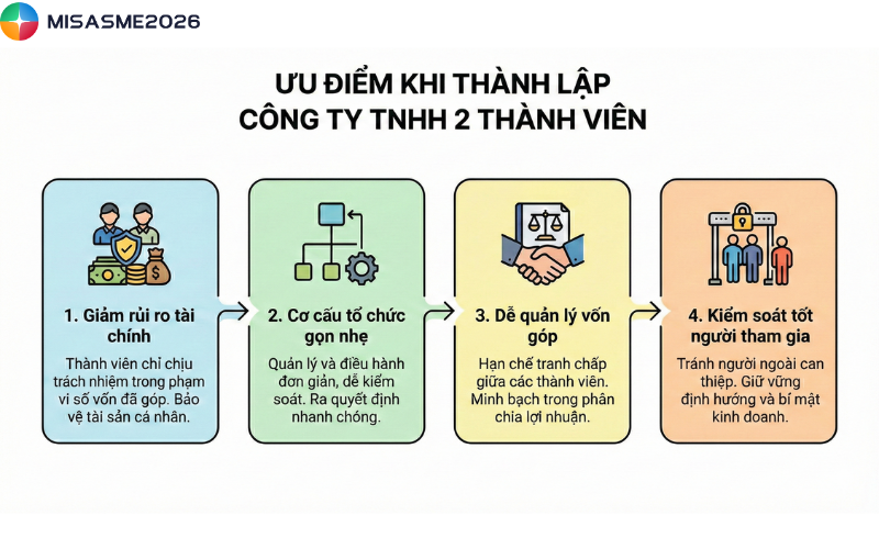Ưu điểm khi thành lập công ty trách nhiệm hữu hạn hai thành viên