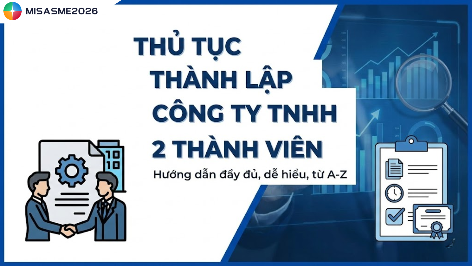 Thành lập công ty TNHH 2 thành viên là lựa chọn phù hợp khi cá nhân hoặc tổ chức muốn kinh doanh cùng đối tác và kiểm soát tốt rủi ro tài chính. Để quá trình thành lập diễn ra thuận lợi, doanh nghiệp cần nắm rõ các điều kiện, hồ sơ và thủ tục theo quy định pháp luật. Nội dung bài viết sau của phần mềm kế toán MISA SME sẽ giúp bạn hiểu nhanh và đầy đủ các bước cần thực hiện.