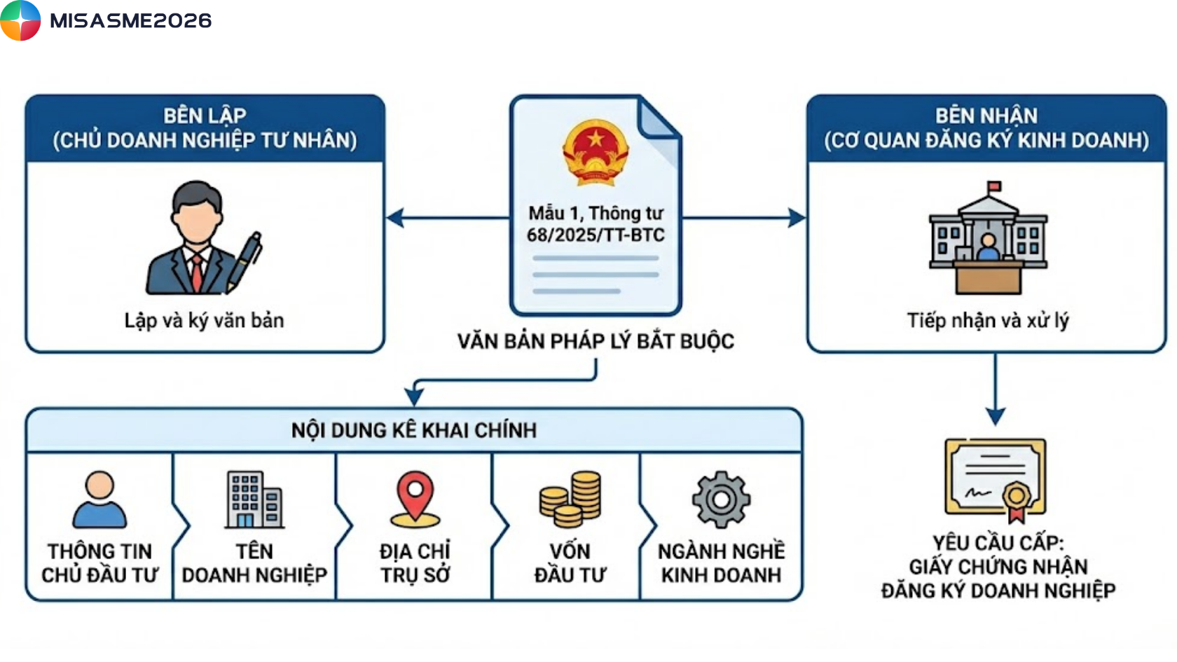 Giấy đề nghị đăng ký doanh nghiệp tư nhân là một trong những giấy tờ pháp lý quan trọng và bắt buộc khi cá nhân thực hiện thủ tục thành lập doanh nghiệp. Việc hiểu rõ nội dung, mẫu biểu và cách điền chính xác giấy đề nghị sẽ giúp hồ sơ được tiếp nhận nhanh chóng, hạn chế tối đa rủi ro bị trả lại hoặc yêu cầu bổ sung. Trong bài viết dưới đây, phần mềm quản lý kế toán MISA SME sẽ hướng dẫn chi tiết để bạn dễ dàng thực hiện đúng quy định.