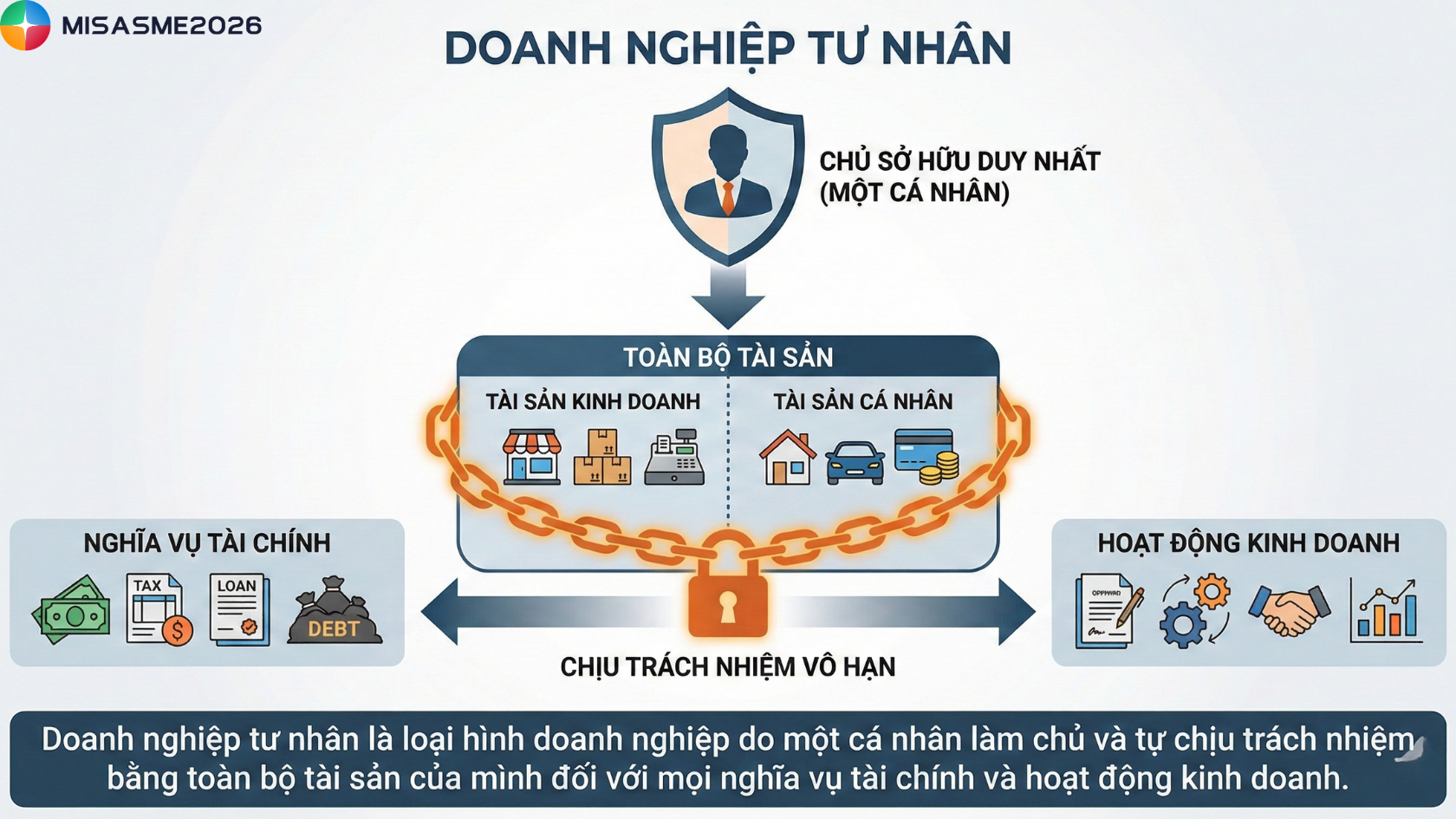 Doanh nghiệp tư nhân là một trong những loại hình doanh nghiệp phổ biến tại Việt Nam, đặc biệt phù hợp với cá nhân muốn tự chủ trong hoạt động kinh doanh. Tuy nhiên, trước khi lựa chọn mô hình này, bạn cần hiểu rõ đặc điểm pháp lý, ưu nhược điểm cũng như thủ tục thành lập doanh nghiệp tư nhân theo quy định hiện hành. Bài viết dưới đây của phần mềm kế toán MISA SME sẽ giúp bạn nắm tổng quan các thông tin quan trọng liên quan đến doanh nghiệp tư nhân.