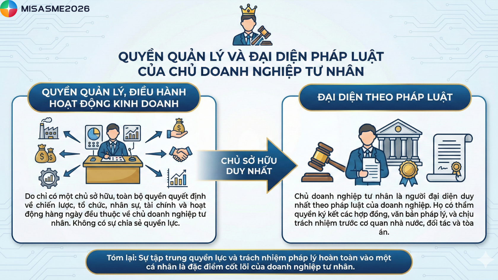 Chủ doanh nghiệp toàn quyền quyết định việc quản lý và điều hành họat động kinh doanh