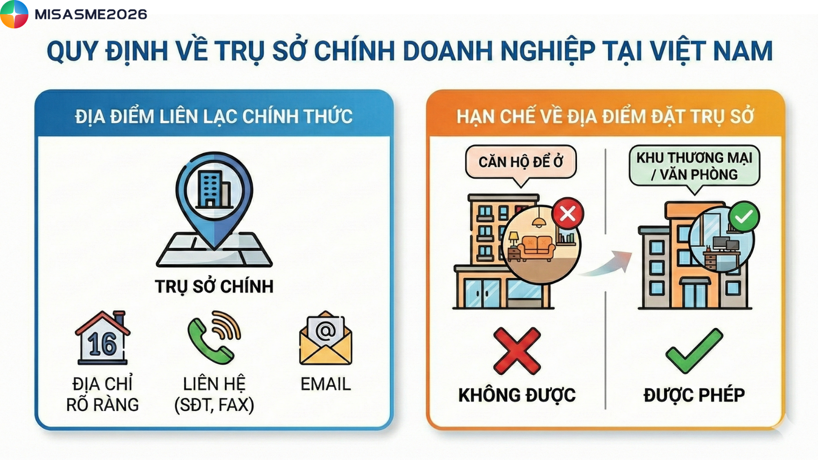 Theo quy định pháp luật về nhà ở, doanh nghiệp không được đặt trụ sở tại căn hộ chung cư chỉ có chức năng để ở. Doanh nghiệp chỉ được đặt trụ sở tại khu thương mại hoặc khu văn phòng trong tòa nhà chung cư.