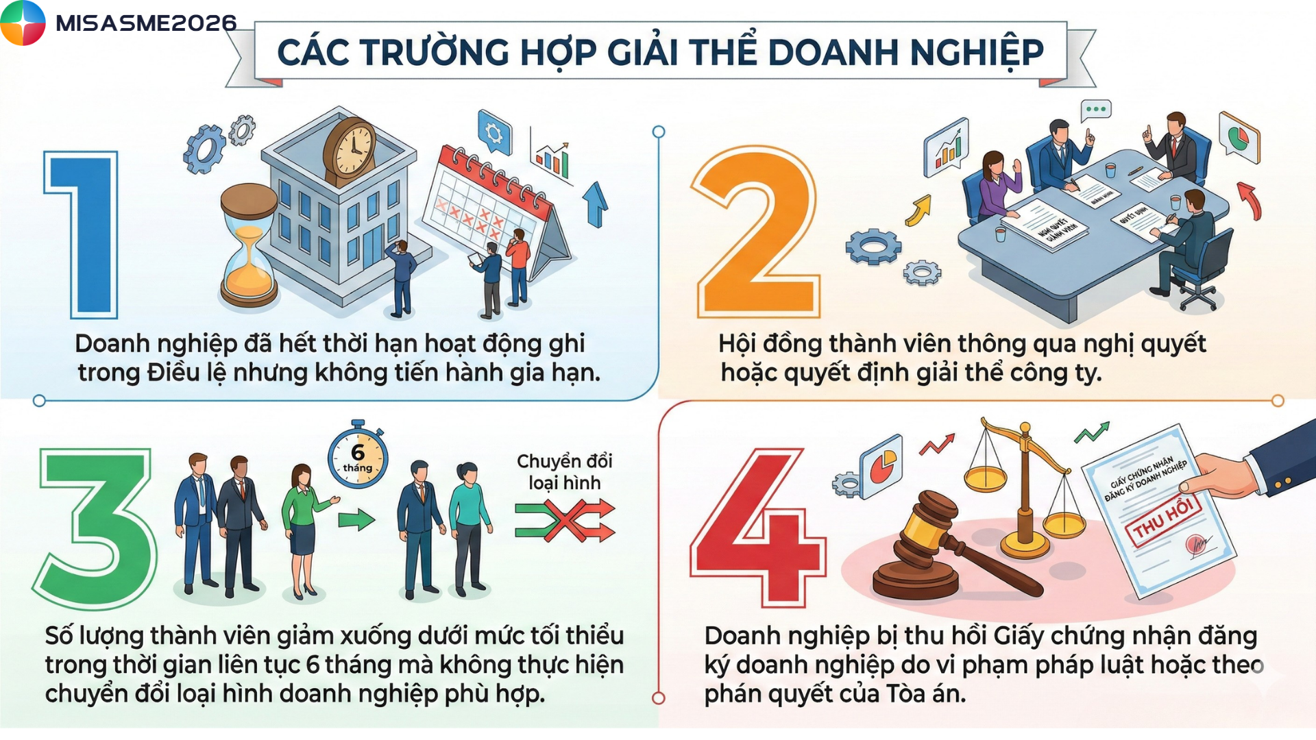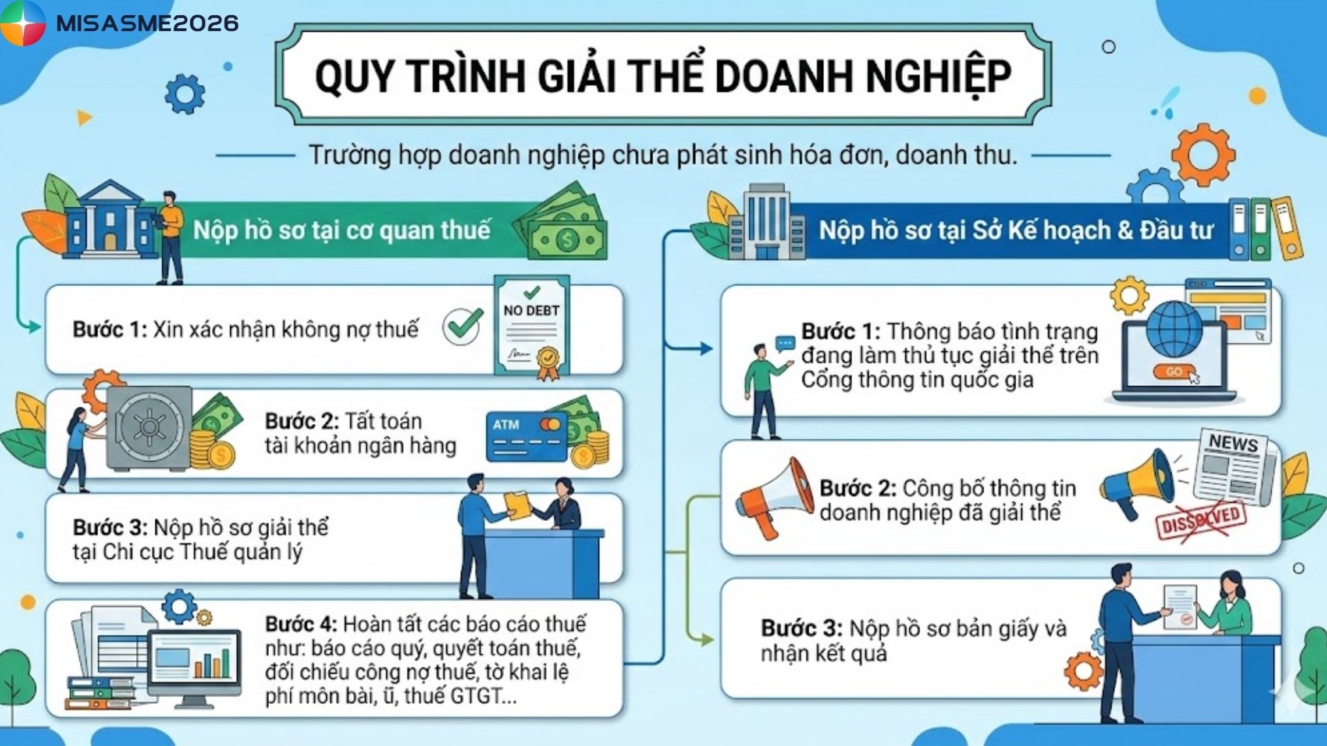 Trong quá trình hoạt động, không ít doanh nghiệp phải đối mặt với việc chấm dứt kinh doanh do nhiều nguyên nhân khác nhau. Khi đó, việc nắm rõ thủ tục giải thế công ty tnhh 2 thành viên là điều cần thiết để đảm bảo thực hiện đúng quy định pháp luật, tránh phát sinh rủi ro về thuế và trách nhiệm pháp lý. Bài viết sau của phần mềm kế toán doanh nghiệp MISA SME sẽ giúp bạn hiểu rõ các trường hợp, điều kiện, hồ sơ cũng như quy trình giải thể chi tiết nhất.