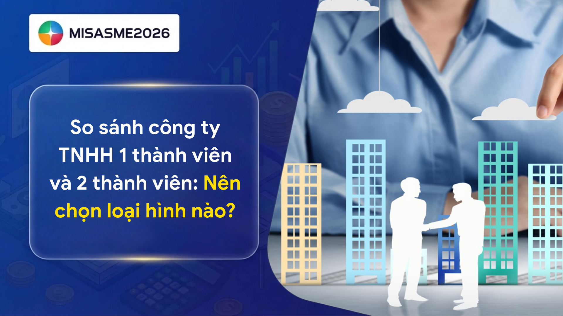 Việc lựa chọn loại hình doanh nghiệp phù hợp ngay từ đầu sẽ ảnh hưởng lớn đến quá trình vận hành và phát triển. Công ty TNHH một thành viên và công ty TNHH hai thành viên trở lên là hai mô hình phổ biến nhưng có nhiều khác biệt về cơ cấu và vốn. Bài viết dưới đây của phần mềm kế toán MISA SME sẽ giúp bạn so sánh công ty TNHH 1 thành viên và 2 thành viên chi tiết, từ ưu nhược điểm đến điểm giống và khác nhau, giúp bạn lựa chọn mô hình phù hợp.