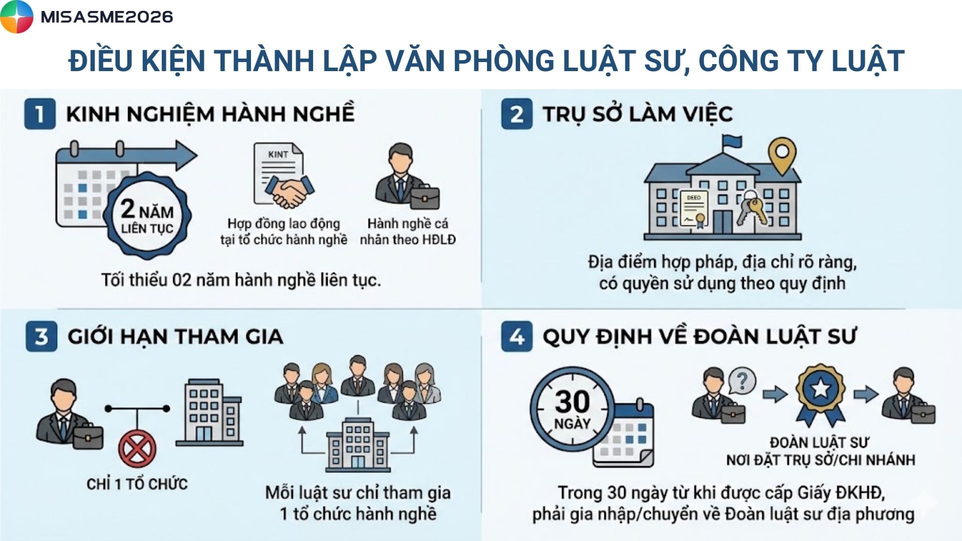 2. Điều kiện thành lập văn phòng luật sư, công ty luật