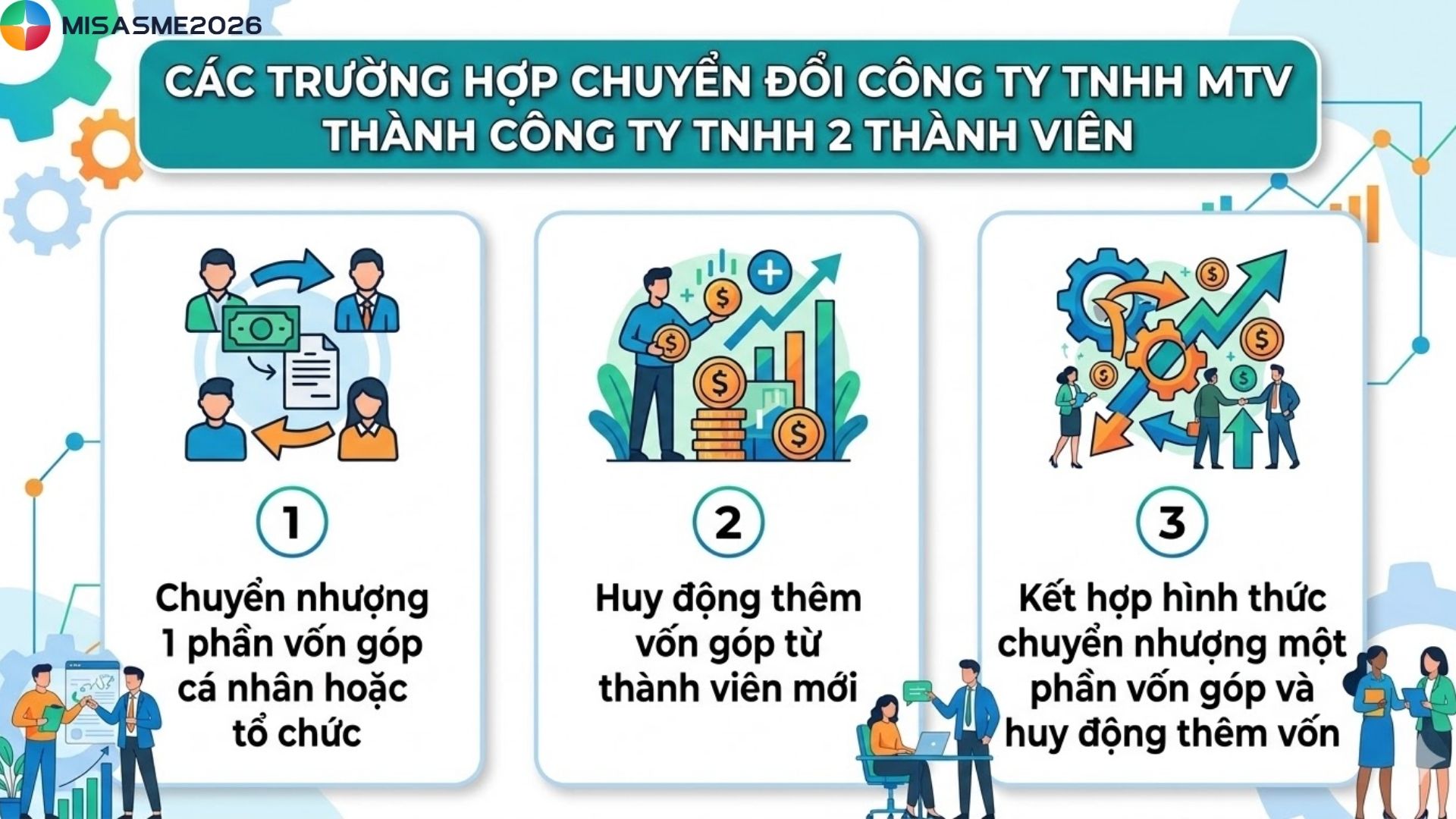 - Kết hợp cả hai hình thức trên: Nghĩa là doanh nghiệp vừa chuyển nhượng một phần vốn góp vừa huy động thêm vốn từ thành viên mới.