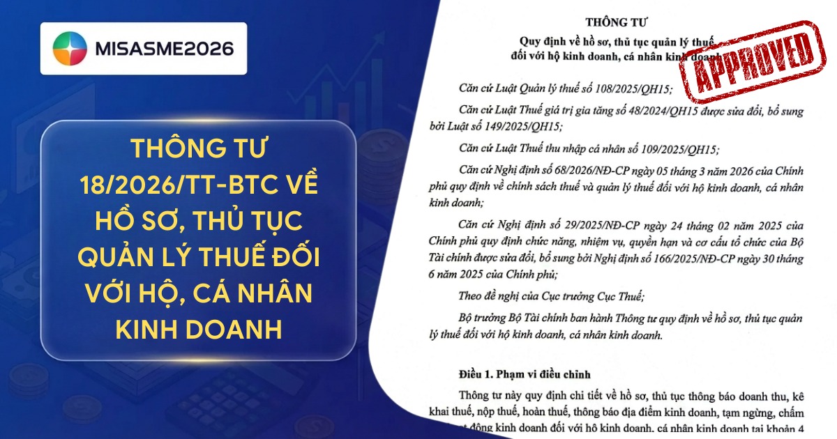 Cùng phần mềm kế toán MISA SME tìm hiểu chi tiết những điểm mới nổi bật nhất của Thông tư 18/2026/TT-BTC qua bài viết dưới đây để đảm bảo quá trình kinh doanh tuân thủ đúng pháp luật!