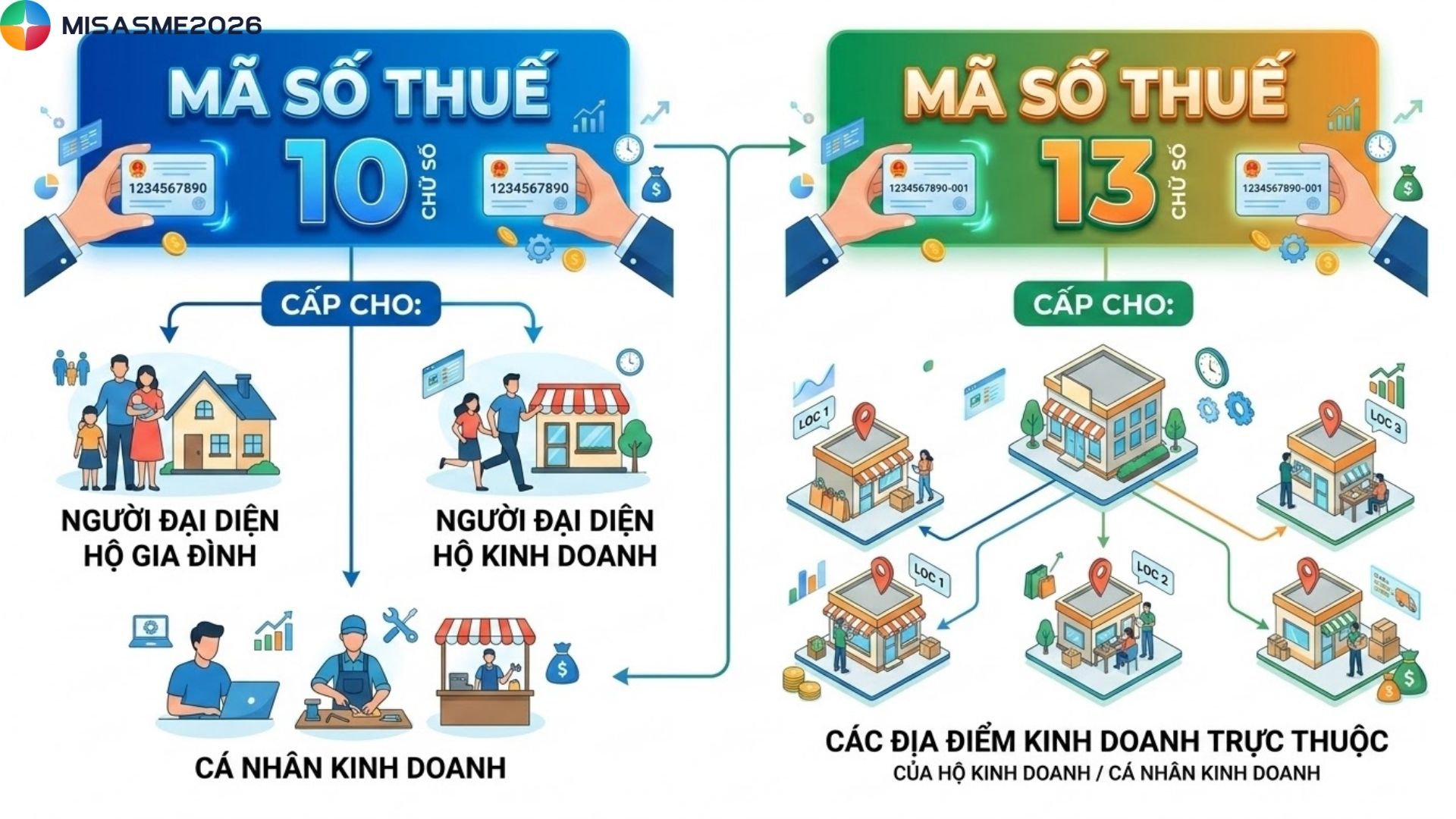 • Mã số thuế 13 chữ số được cấp cho các địa điểm kinh doanh trực thuộc của hộ kinh doanh hoặc cá nhân kinh doanh.