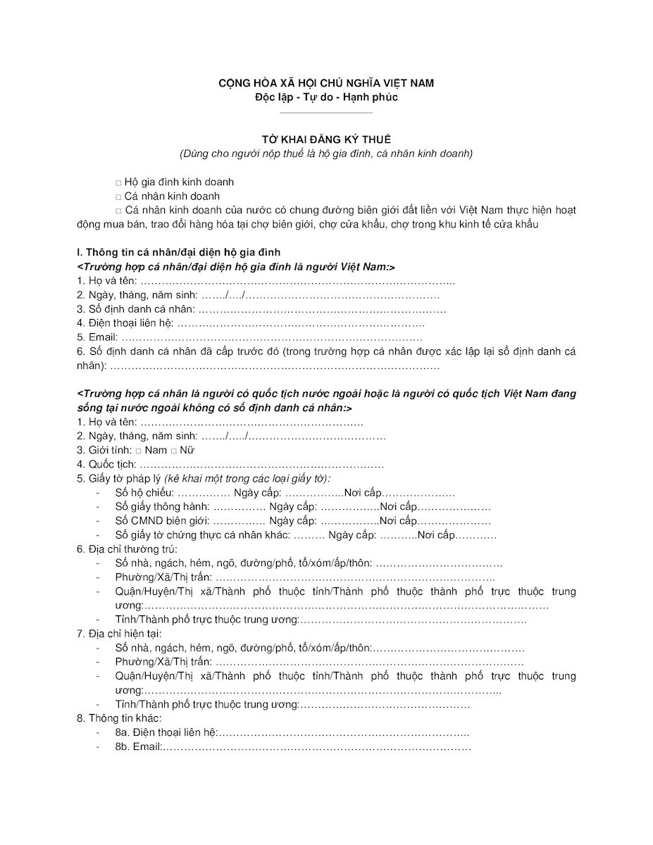 - Tờ khai đăng ký thuế mẫu 03-DK-TCT kèm bảng kê cửa hàng (nếu có).