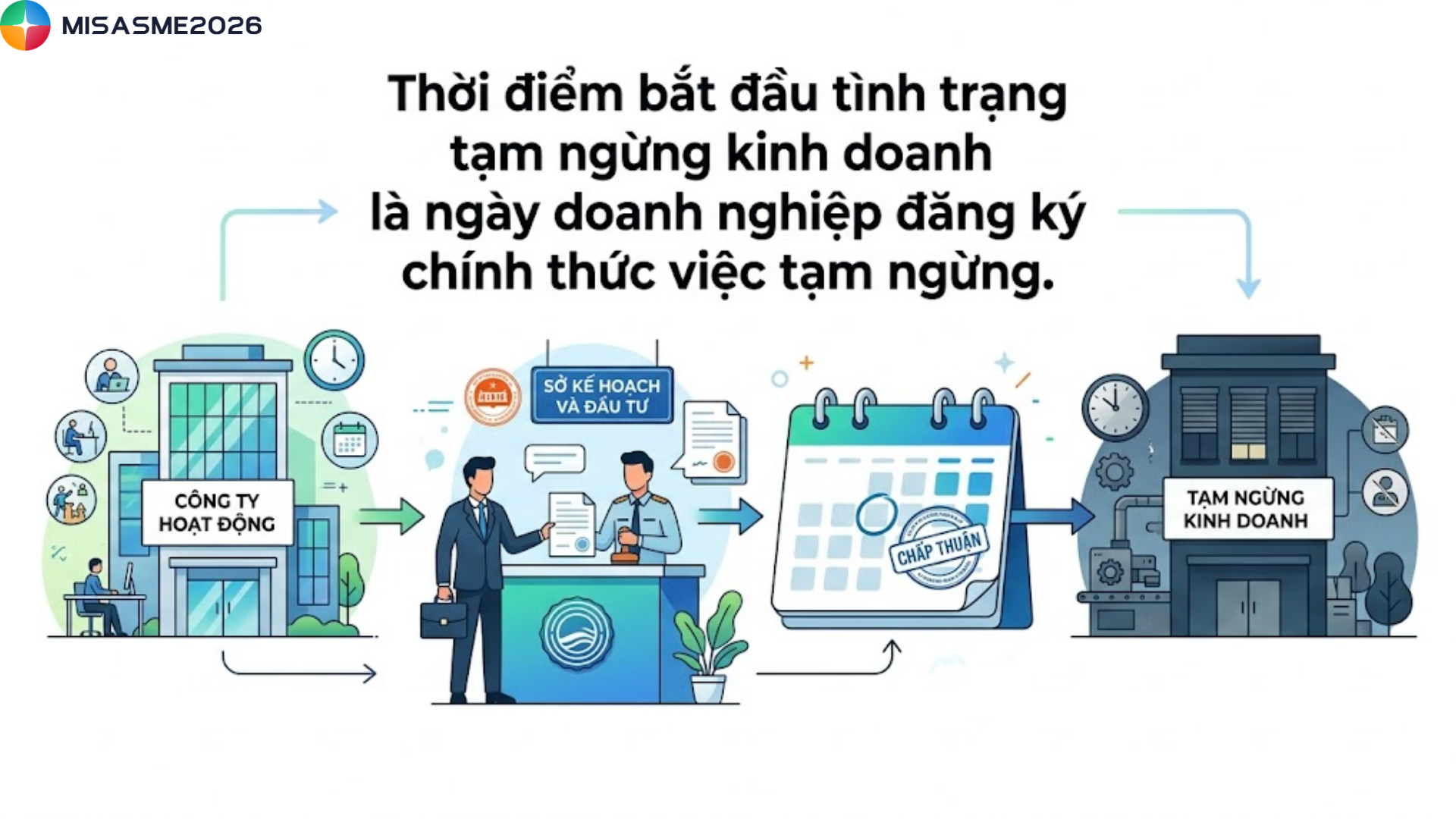 - Thời điểm bắt đầu tình trạng tạm ngừng kinh doanh là ngày doanh nghiệp đăng ký chính thức việc tạm ngừng.