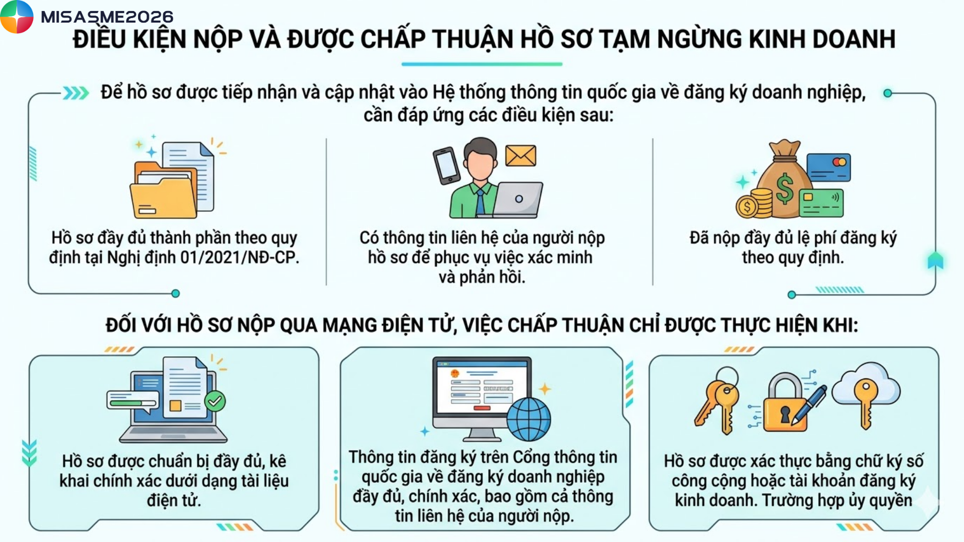 Bạn đang có kế hoạch tạm ngừng hoạt động nhưng chưa rõ hồ sơ tạm ngừng kinh doanh gồm những gì, thủ tục ra sao và cần lưu ý những quy định nào để tránh sai sót? Đây là vấn đề mà rất nhiều doanh nghiệp và hộ kinh doanh gặp phải khi muốn “tạm dừng” để tái cơ cấu hoặc vượt qua giai đoạn khó khăn. Trong bài viết này, phần mềm kế toán MISA SME sẽ giúp bạn nắm rõ từ A–Z về hồ sơ tạm ngừng kinh doanh, từ điều kiện, thành phần hồ sơ đến cách nộp và các lưu ý quan trọng.