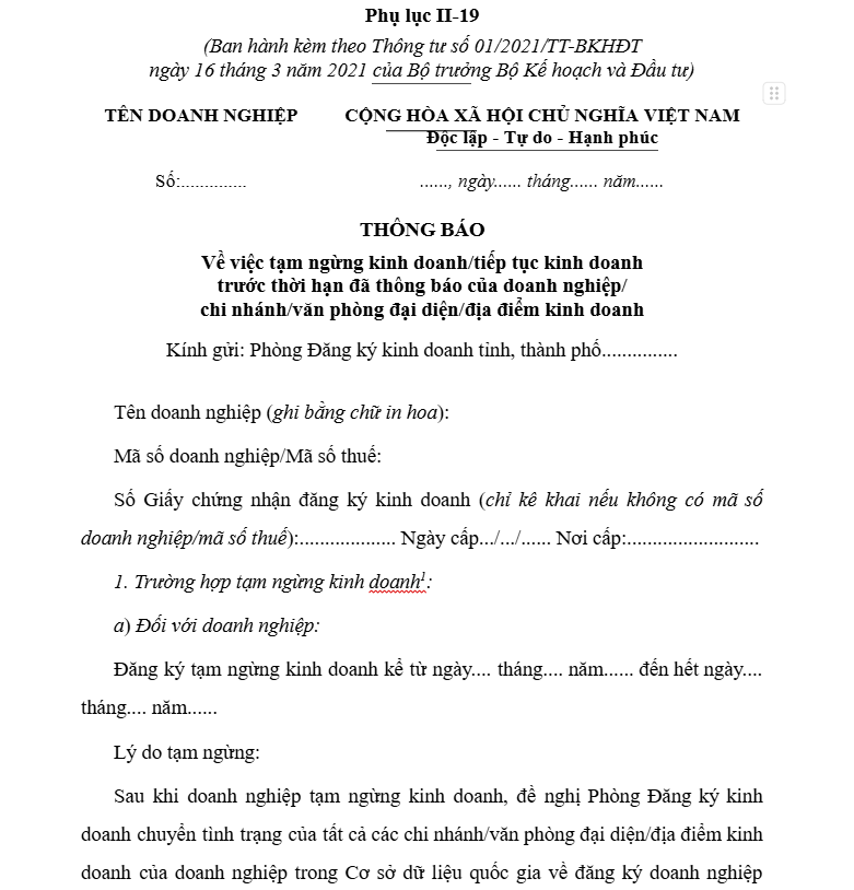 TẢI MẪU THÔNG BÁO TẠM NGỪNG ĐĂNG KÝ KINH DOANH