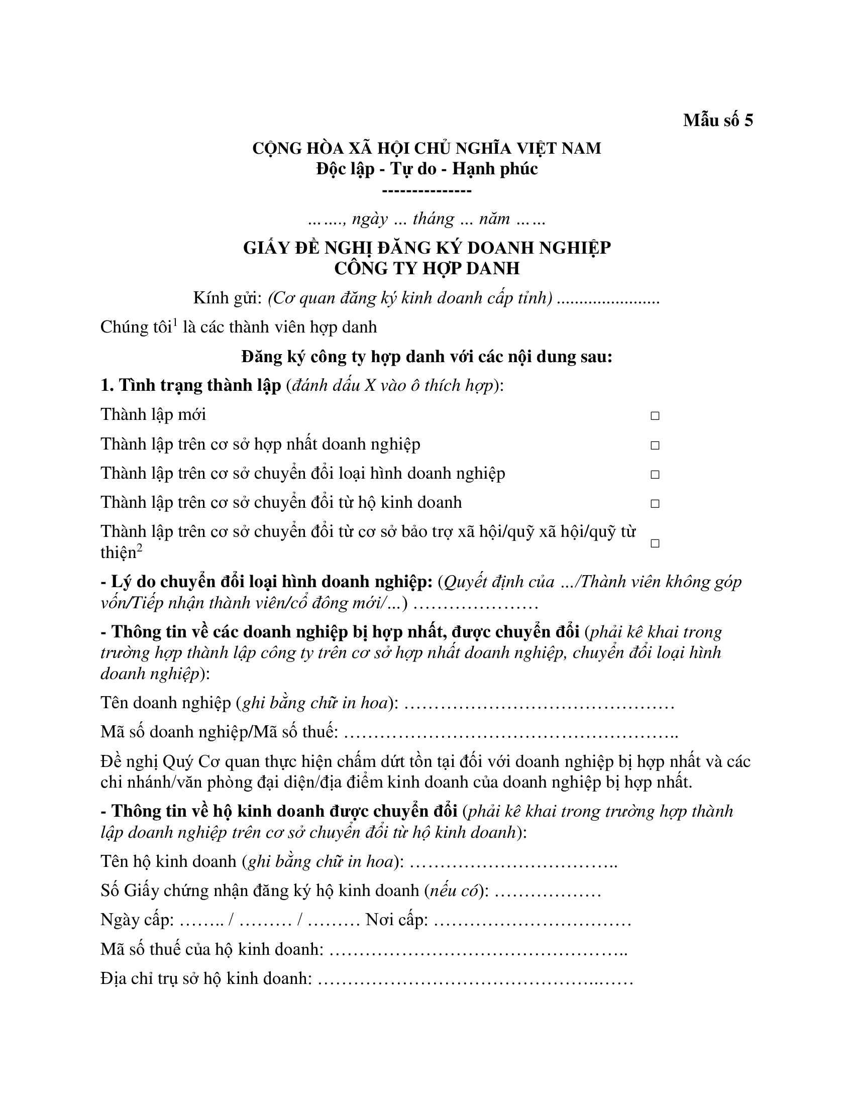 - Giấy đề nghị đăng ký doanh nghiệp theo mẫu quy định (TẢI NGAY)