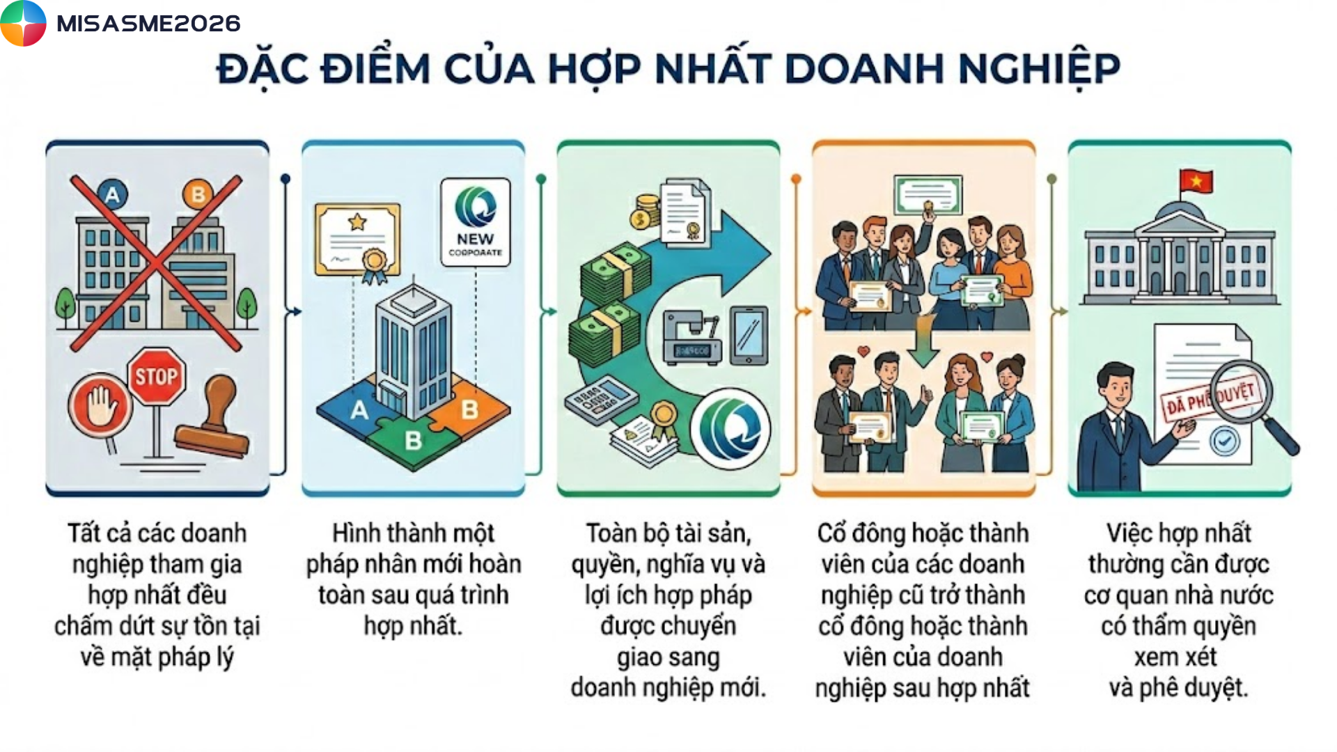 Đặc điểm của hợp nhất doanh nghiệp như sau: