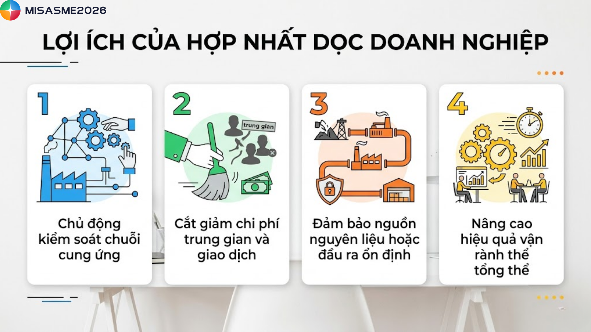 Lợi ích của việc hợp nhất dọc doanh nghiệp: