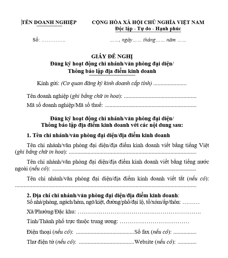 Tải xuống: Mẫu thông báo thành lập địa điểm kinh doanh mới nhất