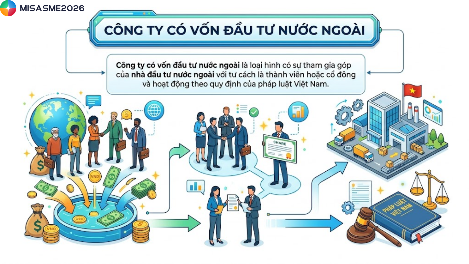 Việc thành lập công ty có vốn đầu tư nước ngoài tại Việt Nam đang trở thành xu hướng phổ biến khi thị trường ngày càng mở cửa và thu hút mạnh mẽ nhà đầu tư quốc tế. Tuy nhiên, để triển khai đúng pháp lý và tối ưu chi phí, nhà đầu tư cần nắm rõ điều kiện, thủ tục và các quy định liên quan. Nếu bạn đang tìm kiếm hướng dẫn chi tiết hoặc cần tư vấn nhanh, đừng ngần ngại liên hệ để được hỗ trợ từ A–Z. Trong bài viết này, phần mềm kế toán MISA SME sẽ giúp bạn hiểu rõ toàn bộ quy trình thành lập công ty có vốn đầu tư nước ngoài một cách dễ hiểu và thực tế nhất.
