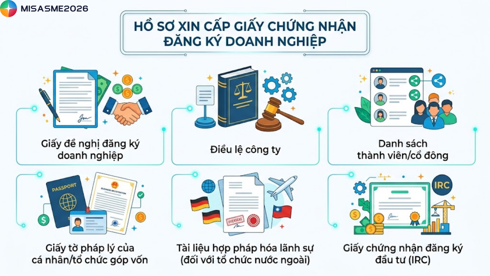Sau khi có IRC, nhà đầu tư tiếp tục thực hiện thủ tục đăng ký doanh nghiệp với hồ sơ gồm:
