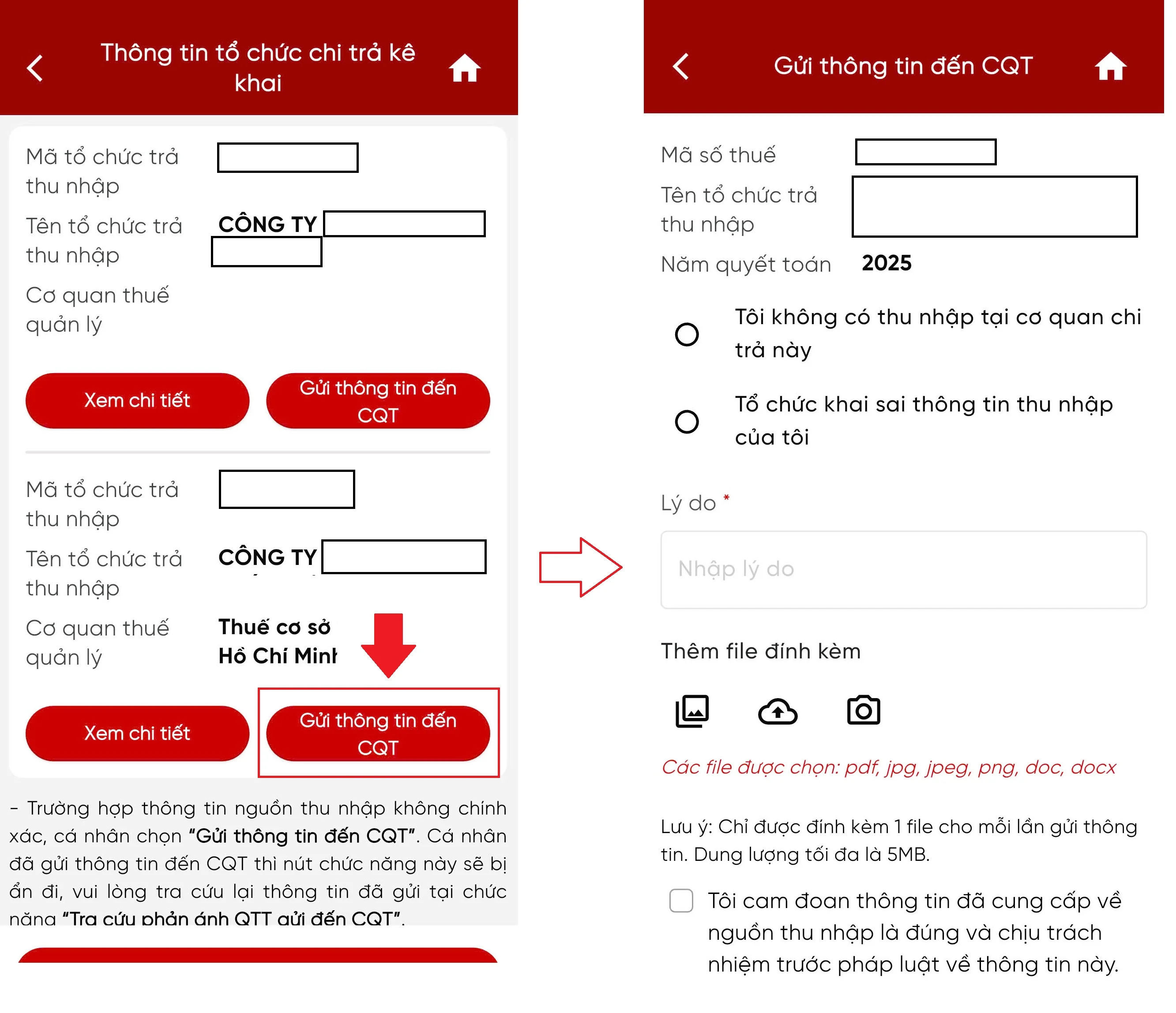 2. Cách xử lý khi bị công ty khác khai khống thuế TNCN trên phần mềm eTax Mobile