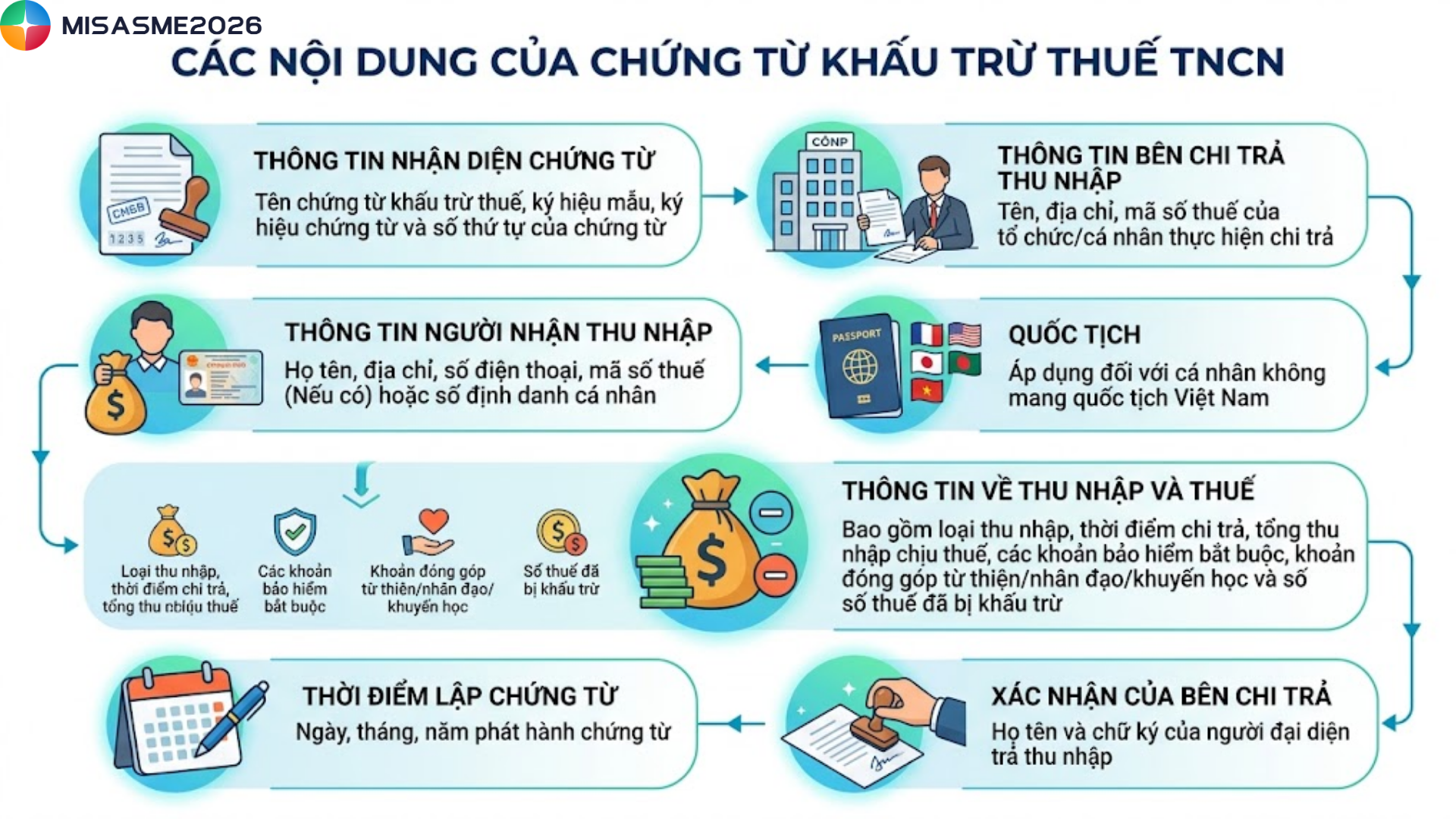 Bạn đang băn khoăn chứng từ khấu trừ thuế TNCN lấy ở đâu và cần chuẩn bị những gì để quyết toán thuế đúng quy định? Đây là một trong những giấy tờ quan trọng nhưng lại thường bị bỏ sót hoặc hiểu sai trong quá trình kê khai thuế. Nếu bạn chưa rõ cách xin, nơi cấp hay nội dung cần kiểm tra trên chứng từ, hãy theo dõi bài viết dưới đây của phần mềm kế toán MISA SME để được hướng dẫn chi tiết và tránh các rủi ro không đáng có khi quyết toán thuế.
