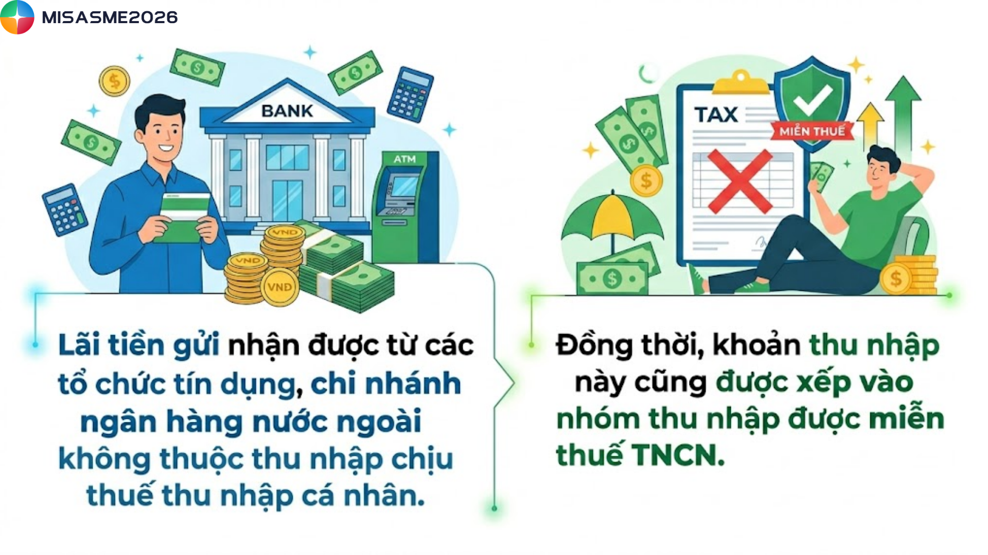 Nhiều người khi gửi tiết kiệm thường băn khoăn lãi tiền gửi ngân hàng có phải nộp thuế TNCN hay không và liệu khoản thu nhập này có bị khấu trừ thuế như các nguồn thu khác. Trên thực tế, không phải ai cũng hiểu rõ quy định pháp luật dẫn đến dễ nhầm lẫn khi kê khai hoặc quyết toán thuế. Nếu bạn cũng đang có thắc mắc này, hãy cùng tìm hiểu chi tiết ngay dưới đây của phần mềm quản lý kế toán MISA SME để nắm rõ quy định mới nhất và tránh sai sót không đáng có.
