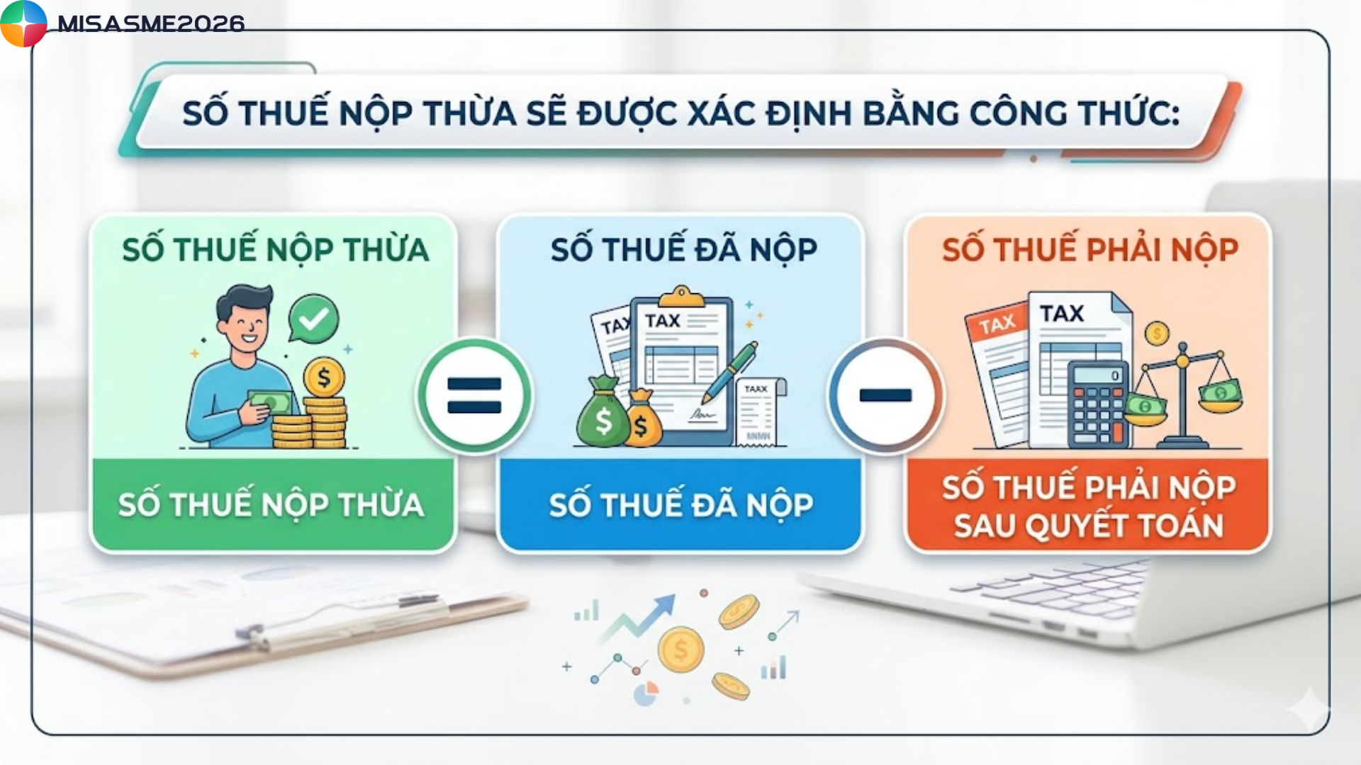 Số thuế nộp thừa = Số thuế đã nộp – Số thuế phải nộp sau quyết toán