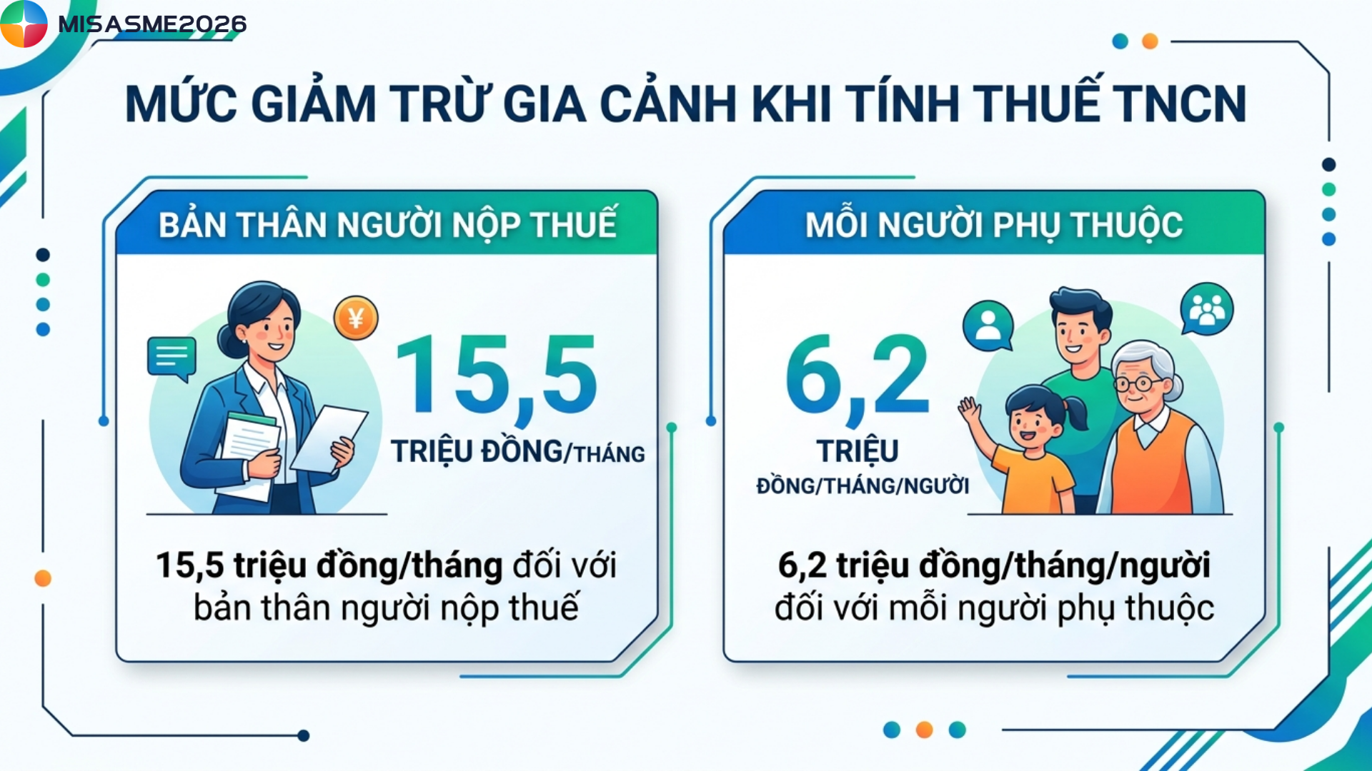 • 15,5 triệu đồng/tháng đối với bản thân người nộp thuế