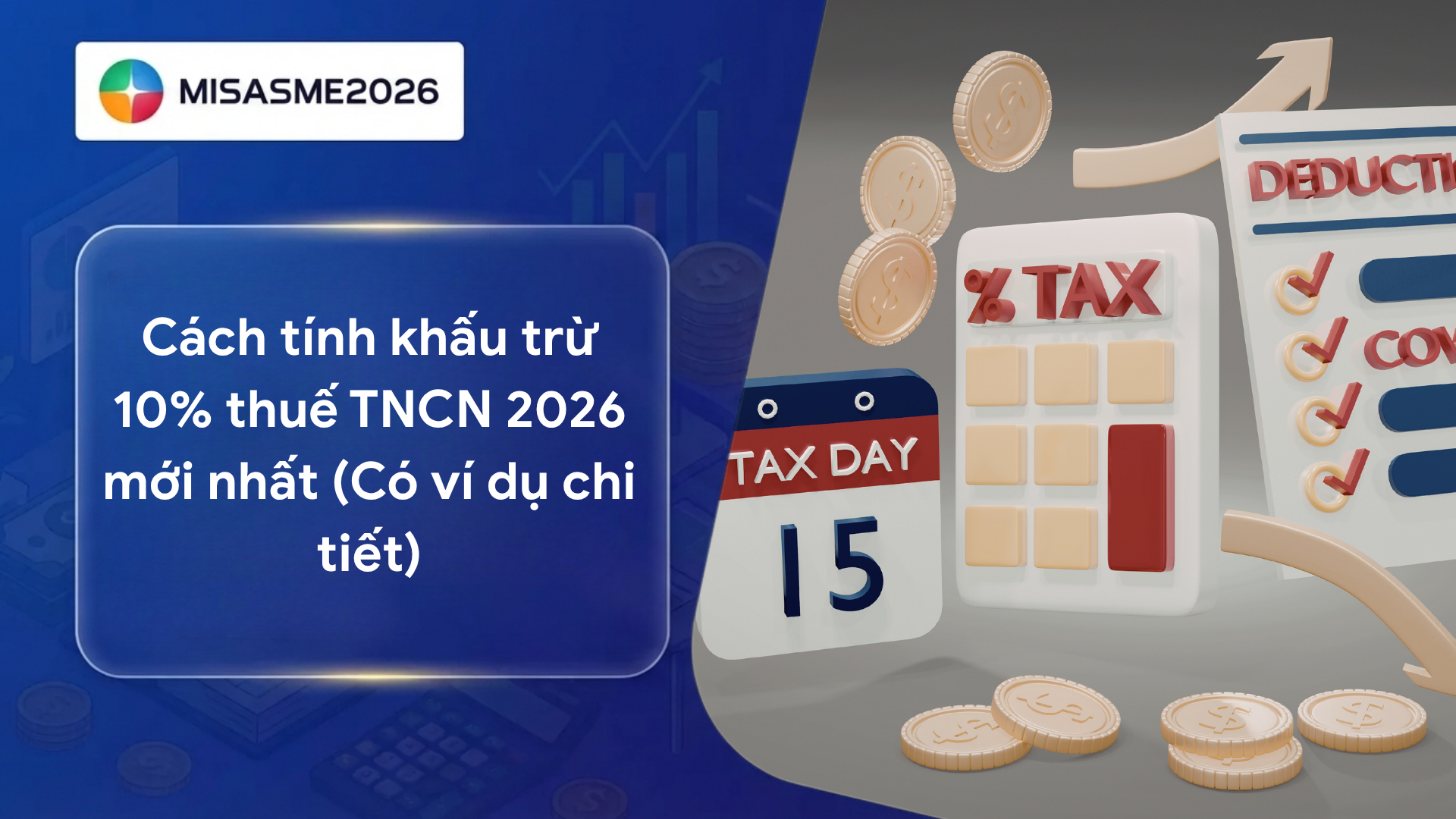 Bạn đang tìm hiểu cách tính khấu trừ 10% thuế TNCN áp dụng trong trường hợp nào và tính ra sao? Nhiều cá nhân và doanh nghiệp vẫn nhầm lẫn giữa khấu trừ 10% và biểu thuế lũy tiến, dẫn đến sai sót khi chi trả thu nhập. Đừng để sai sót thuế làm ảnh hưởng đến quyền lợi của bạn – tìm hiểu ngay cách tính đúng và quy định mới nhất 2026 trong bài viết dưới đây của phần mềm kế toán MISA SME