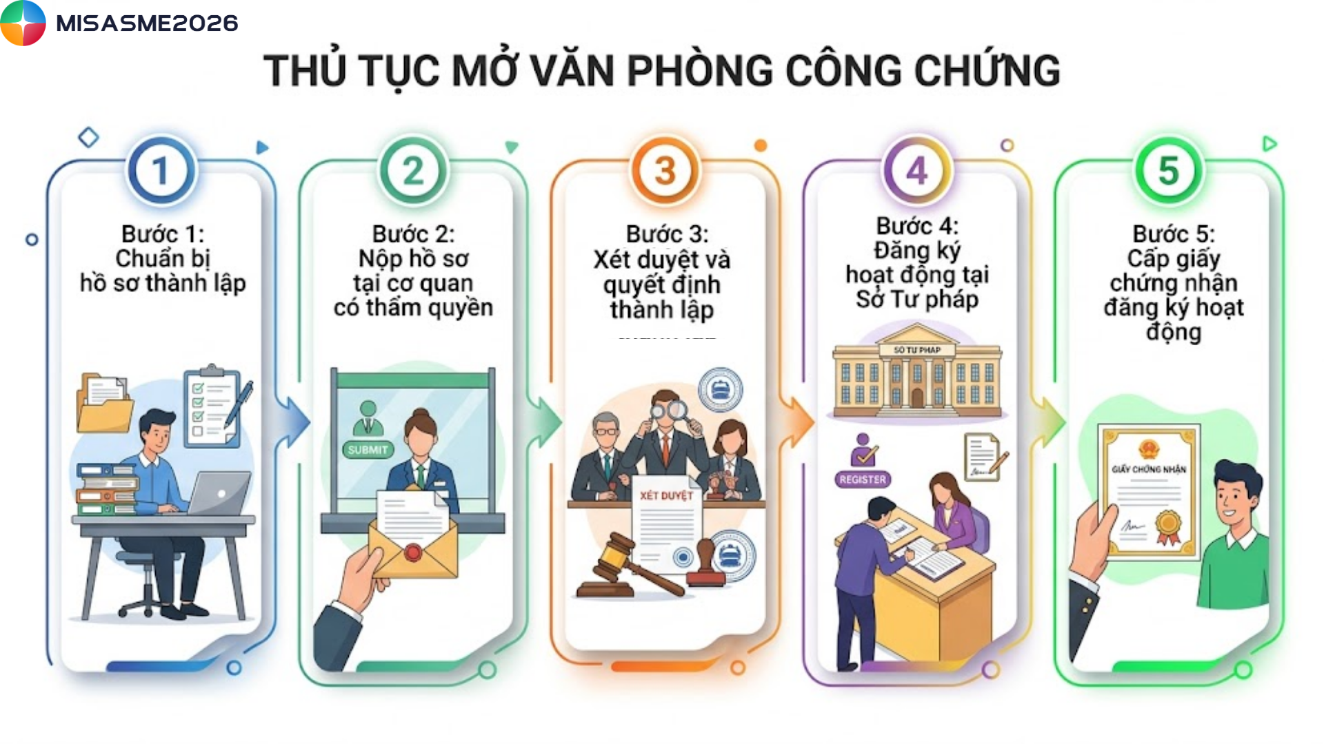 iệc tìm hiểu điều kiện mở văn phòng công chứng là bước quan trọng đầu tiên đối với những cá nhân muốn hành nghề độc lập. Đây là lĩnh vực có quy định pháp lý chặt chẽ, yêu cầu cao về chuyên môn và điều kiện vận hành, nên nếu không nắm rõ từ đầu, bạn rất dễ gặp rủi ro khi làm hồ sơ hoặc bị từ chối cấp phép. Trong bài viết này, phần mềm kế toán MISA SME sẽ giúp bạn cập nhật đầy đủ các điều kiện, hồ sơ và thủ tục mới nhất.
