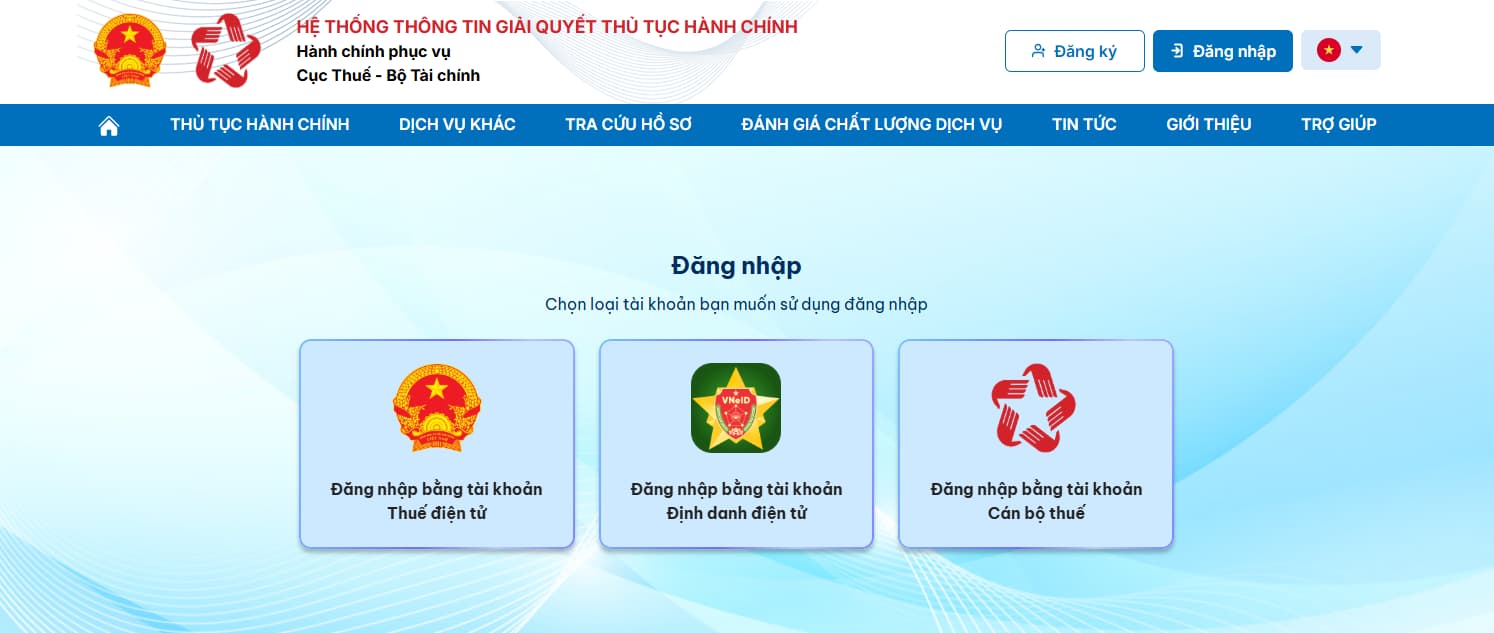 Bước 1: Truy cập vào trang web có địa chỉ https://dichvucong.gdt.gov.vn/tthc/homelogin