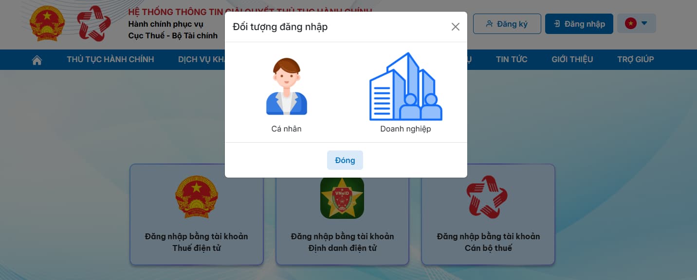 Bước 2: Đăng nhập vào hệ thống bằng tài khoản định danh điện tử, sau đó chọn vào mục Doanh nghiệp