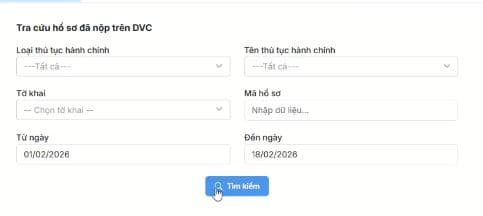 Bước 3: Vào mục Tra cứu hồ sơ và chọn thồ gian cần tra cứu sau đó nhấp Tìm kiếm