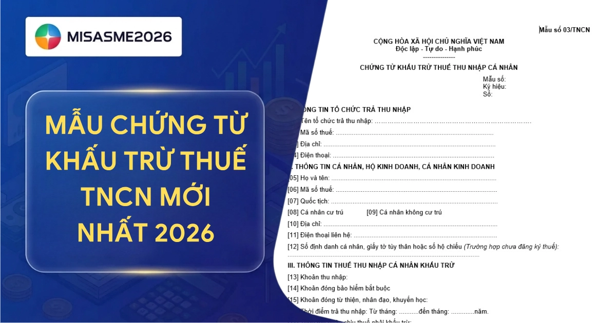 Trong bài viết dưới đây, phần mềm kế toán MISA SME sẽ giúp doanh nghiệp cập nhật đầy đủ mẫu chứng từ khấu trừ thuế TNCN mới nhất và hướng dẫn thực hiện đúng quy định hiện hành.