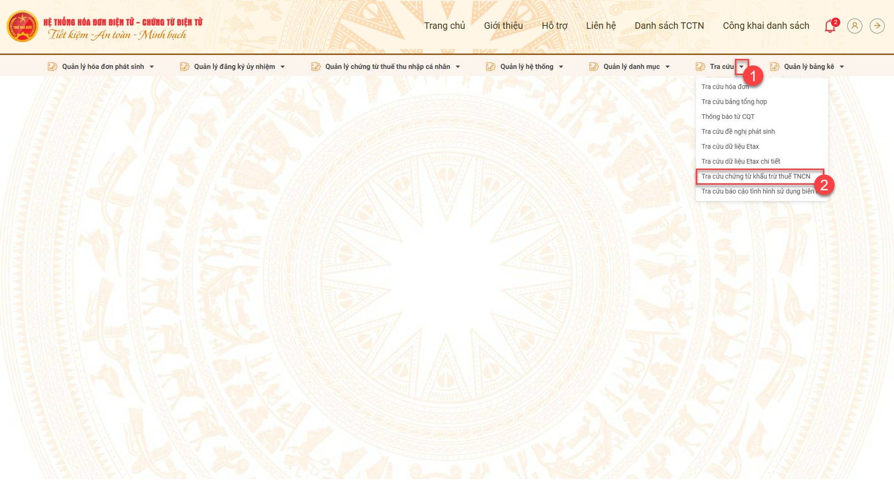 2. Hướng dẫn tra cứu chứng từ khấu trừ thuế TNCN đã nộp đối với cá nhân