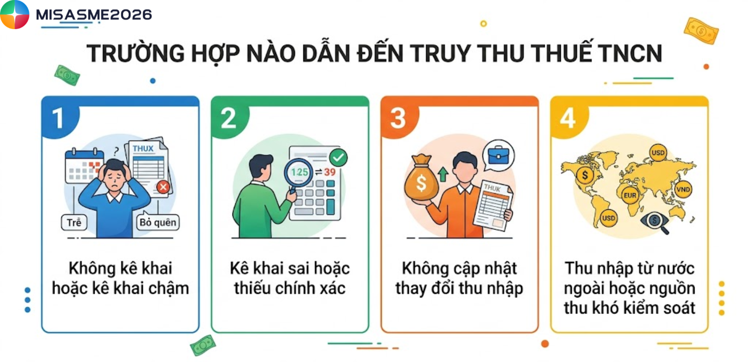 Truy thu thuế TNCN thường phát sinh khi người nộp thuế chưa được thự hiện đúng hoặc đầy đủ nghĩa vụ kê khai theo quy định của pháp luật